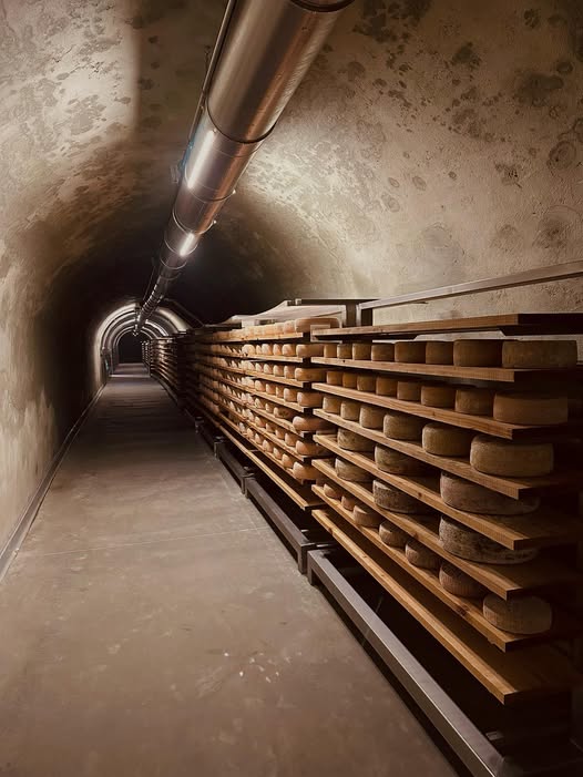 La struttura, che può accogliere circa 10.000 forme di formaggi, è sostanzialmente la stessa di ottanta anni fa e presenta all'interno una temperatura di 10-12 gradi e un'umidità relativa di circa il 96per cento.