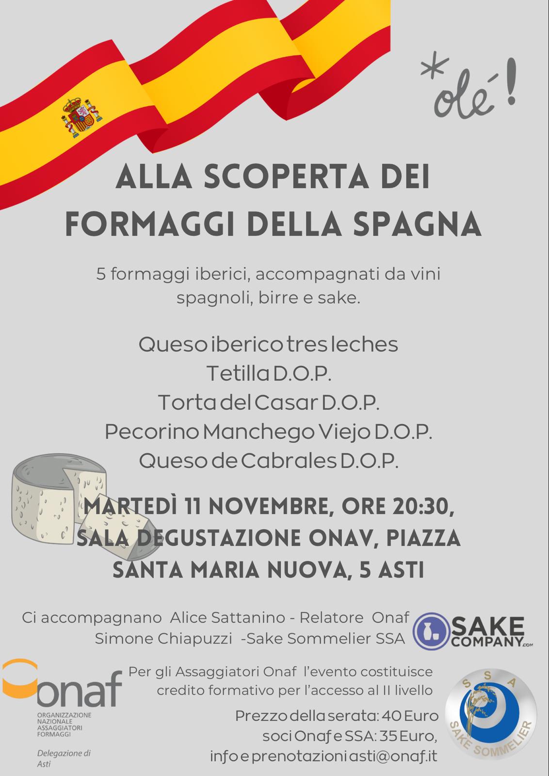L'Onaf di Asti in questa data chiude una stagione ricca di eventi, con l'invito a partecipare ad un'affascinante serata con protagonisti eccellenze casearie spagnole e intriganti abbinamenti. Ai formaggi riportati nell'allegata locandina, saranno proposti in abbinamento: